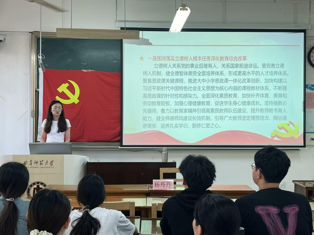 支部书记杨丹丹带领大家学习了党的二十届三中全会提出的深化教育综合改革的重大任务,强调了要充分认识新时代新征程深化教育综合改革的重大意义,并围绕立德树人、服务国家战略和解决人民群众急难愁盼等方面深入讨论了如何落实教育改革的措施。
